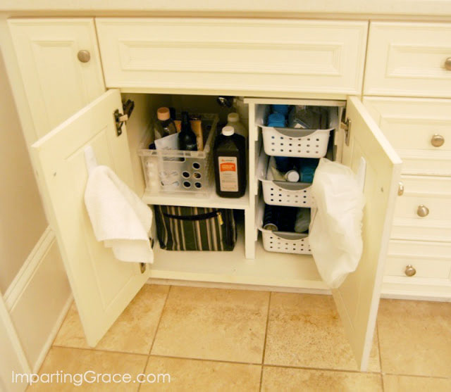 Bathroom organization is always such a problem. Imparting Grace added some simple built-ins to solve the problem. I love this idea.