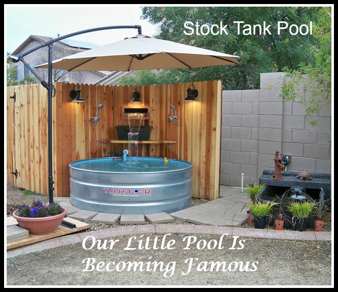 Since we live in the desert, a pool is pretty much a must and we have had several in different houses. Our last home we had a really small one that my children built for us, but it is the one that keeps getting shared in all kinds of magazines. So far we have made it to 4 magazines and HGTV, so my little pool is becoming pretty famous.