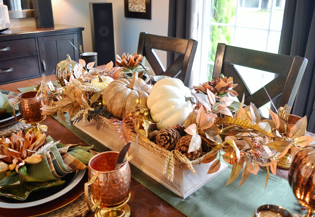 To all of our Canadian friends – Happy Thanksgiving. Dining Delight shared her pretty table with lots of fabulous copper.
