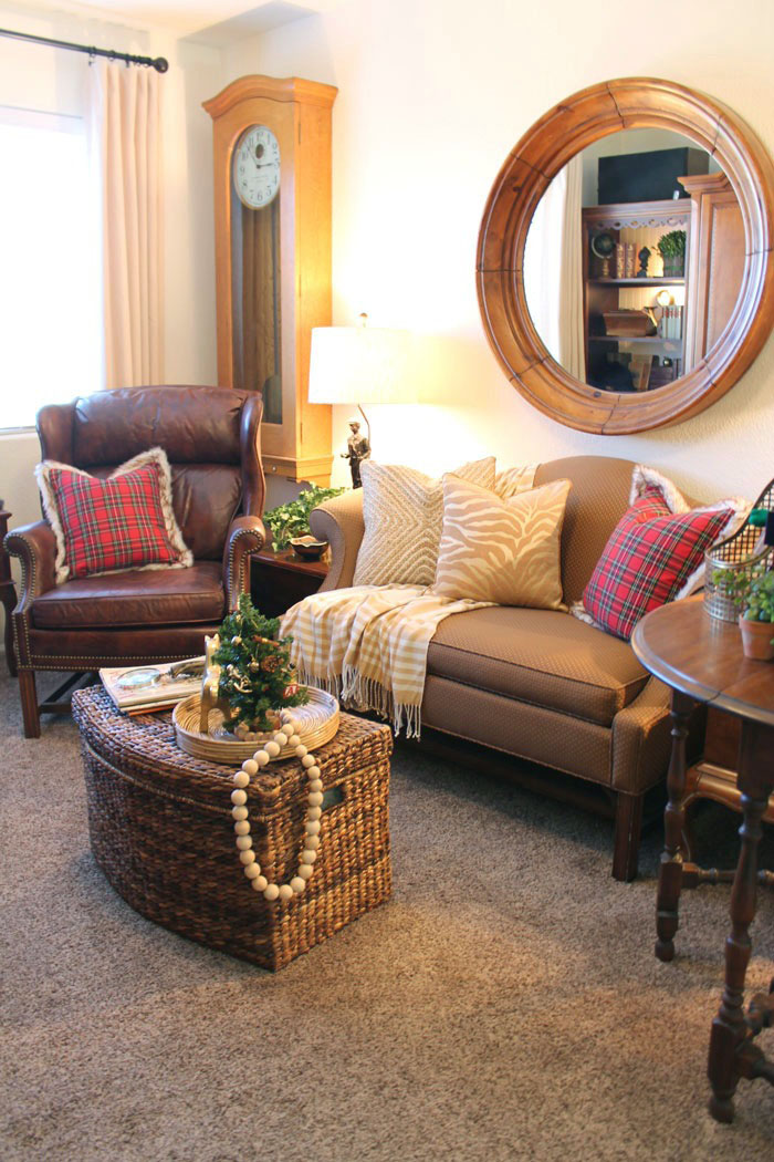 These plaid and fur trimmed pillows I used last year in the family room work perfectly in here.