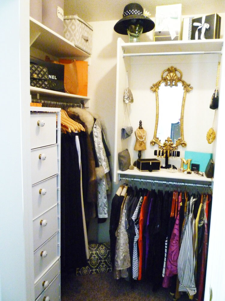 The Master Bedroom Closet was refreshed. We are lucky enough to have his and hers closets in this home, so I gave mine a little makeover. I think maybe next I will add some paint or wallpaper to the back wall and give my primping area a little more character.