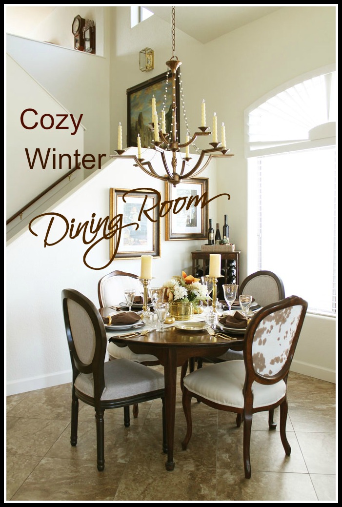 I love to create a pretty tablescape for special occasions, so for a Cozy Winter Tour I created an Elegant Evening kind of table.