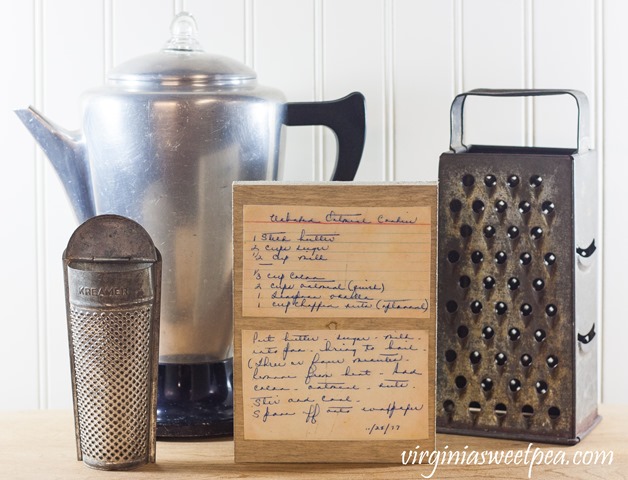 I love old vintage hand written recipe cards. I have a whole box full and use them all the time. . I think this is such a great way to display them.