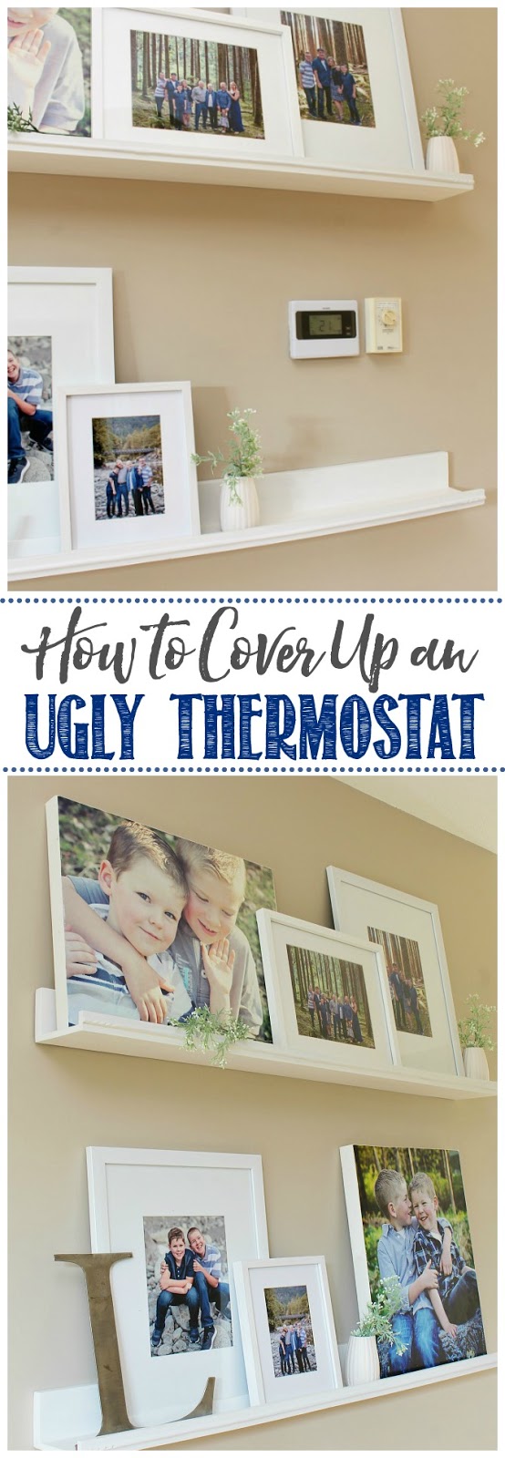 I always wonder why a builder puts a light switch or thermostat right in the middle of a wall. Here is a great idea to camouflage one.