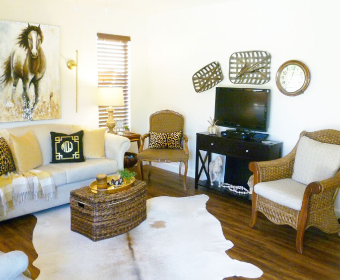 So now we have some of the furniture back where we started. Still getting use to it here. (I am debating whether to stain the wicker chair darker or leave it.)