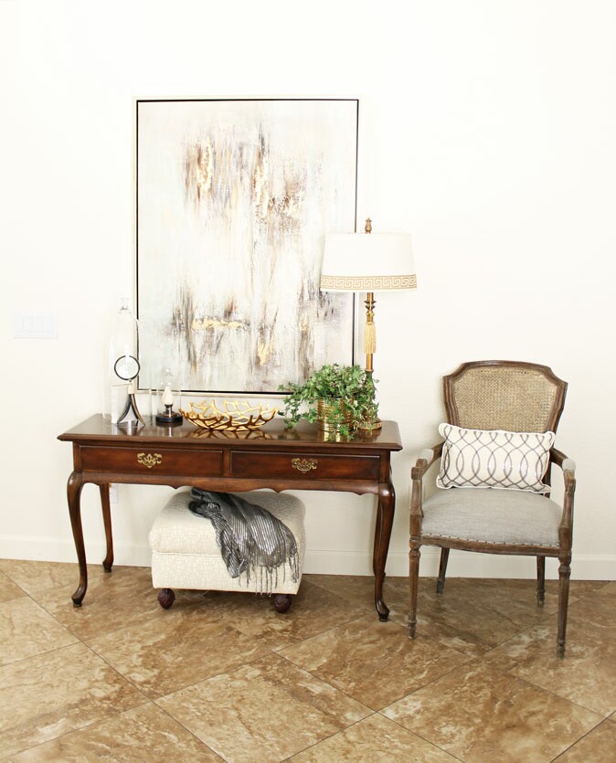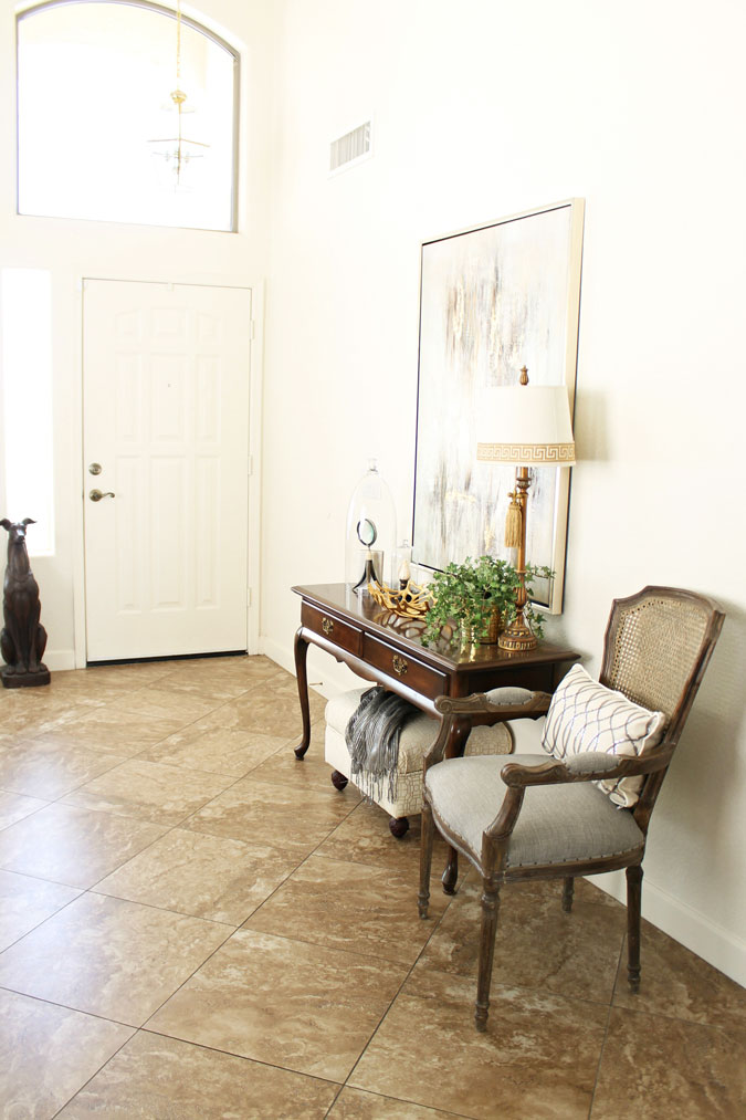 The gray chair was moved to the entrance a few weeks ago and I love it there. Totally changes the feel of the entrance wall.