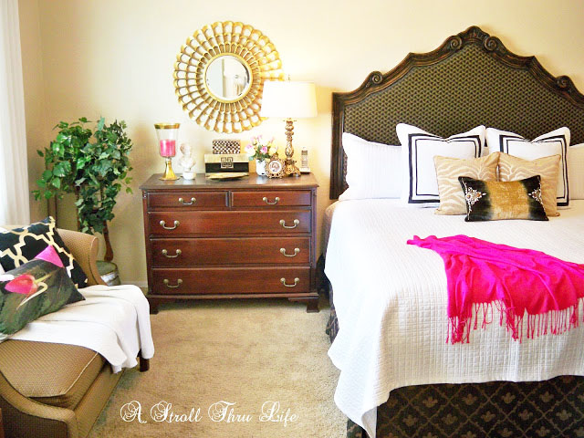 We had pretty much gone through the whole house and refreshed everything. The master bedroom makeover was one of my favorites – – –